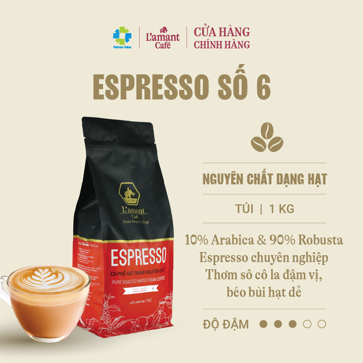 Cà phê hạt rang L’amant Espresso số 06 - L’amant No.06 Espresso Roasted Coffee