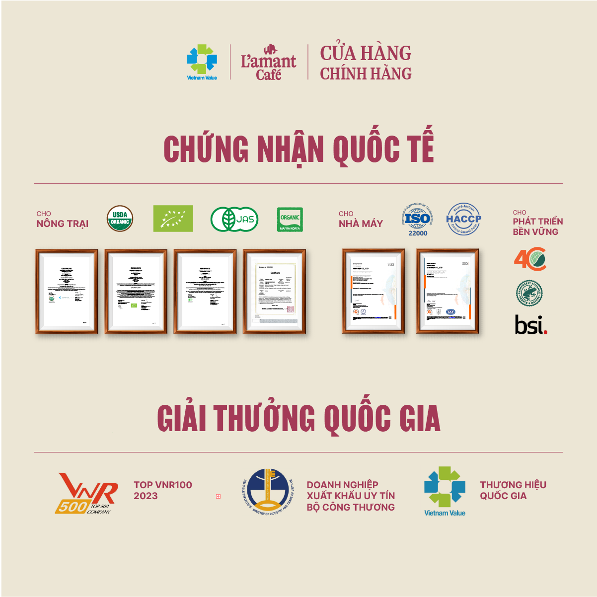 Cà phê hạt hữu cơ nguyên chất L’amant Fine Organic chuẩn USDA